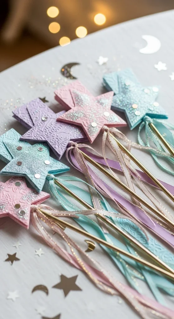 Craft mini “firework” wands using paper stars and tinsel. Attach them to sticks and hand them out to guests for fun photo props. They’re safe for kids and make adorable keepsakes.