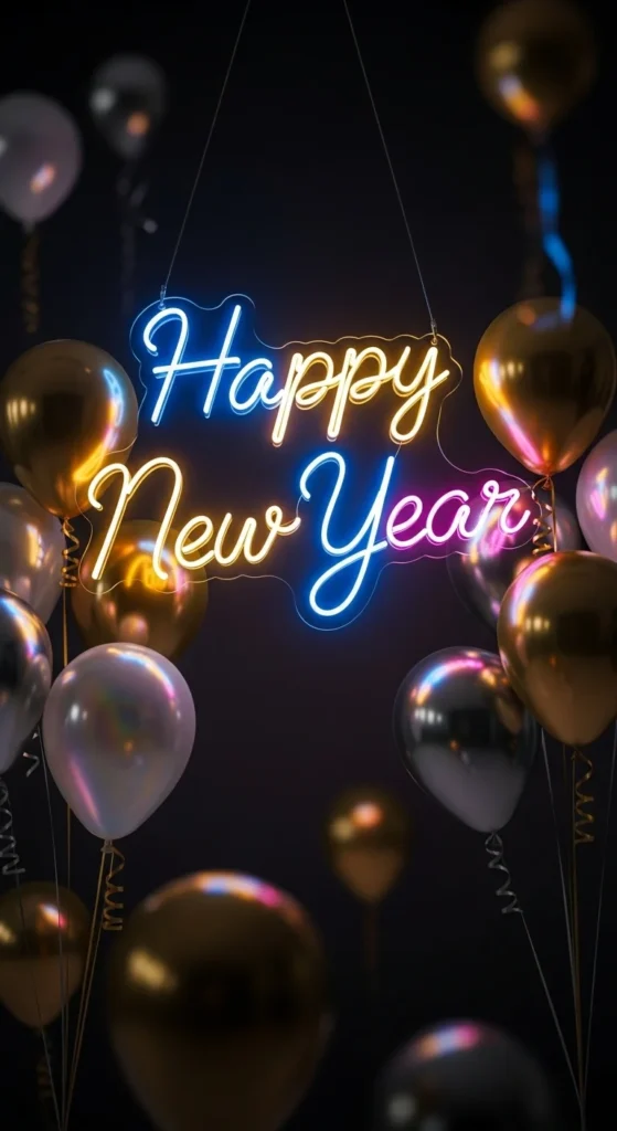 Shape balloons into two champagne bottles “pouring” bubbly balloons upward. Add confetti around. It’s fun, creative, and fits the New Year toast perfectly.