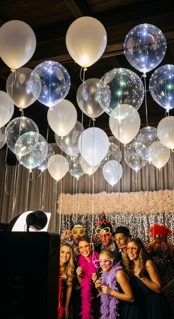 Use large number balloons for “2025” as your centerpiece. Frame them with smaller metallic balloons for depth. It’s the classic photo zone guests can’t resist.