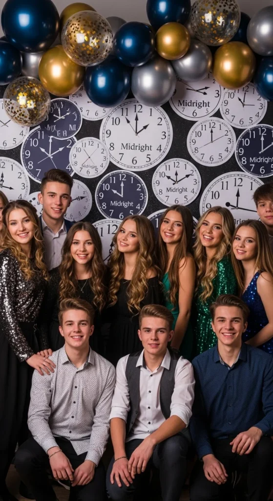 Stick paper clock faces showing “11:55” around your wall and mix with balloons or stars. It ties into the countdown theme perfectly and makes a playful photo moment.
