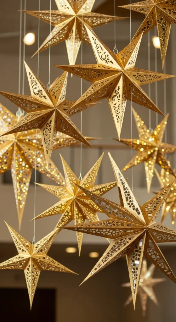 Use shredded paper and glue to form stars. Once dry, paint them gold or silver. They look artisanal and grand.