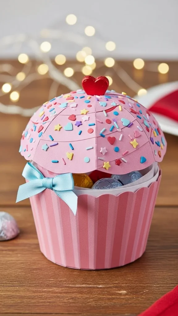 Transform a round container into a Valentine cupcake. Use paper baking “wrappers,” add a dome top, and glue on sprinkles. Kids enjoy picking color combinations. This box looks cute on display and holds plenty of cards.