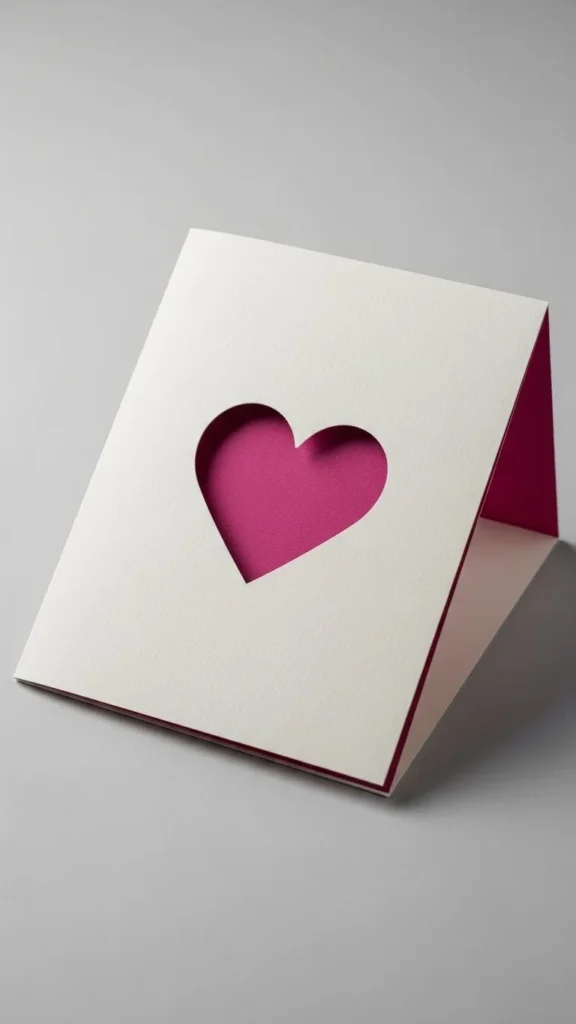 Cut a heart window on front. Glue patterned paper inside. The contrast makes it feel special without extra work.