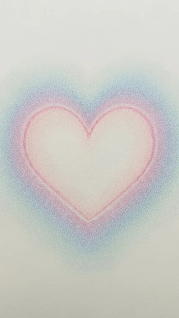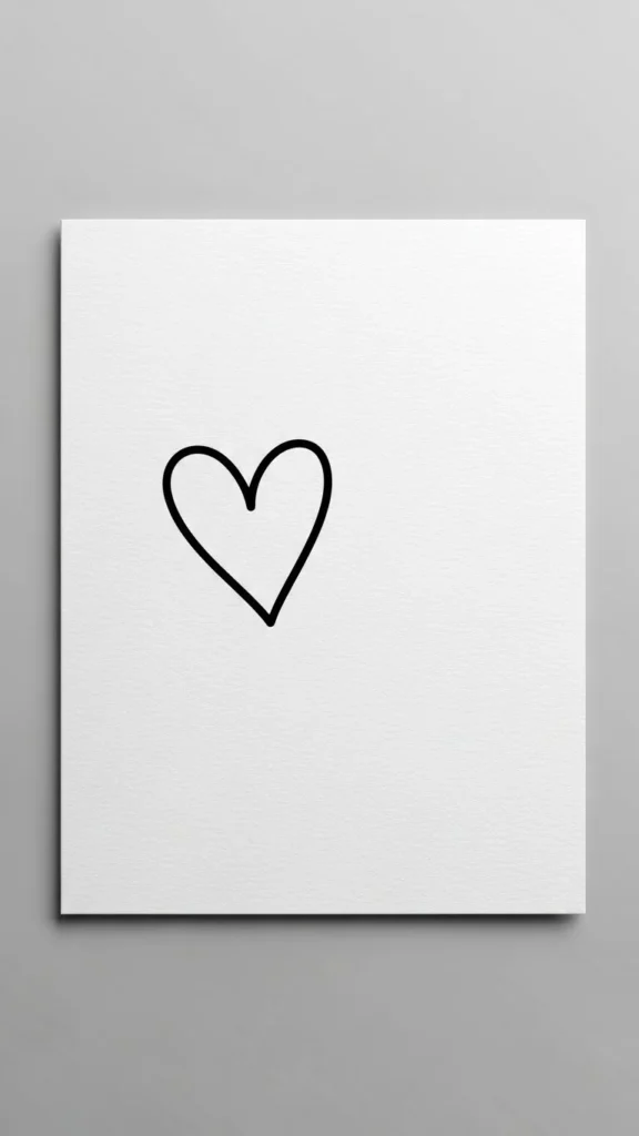 Draw one thin heart outline. Leave space blank. Clean and quiet design works for every style.