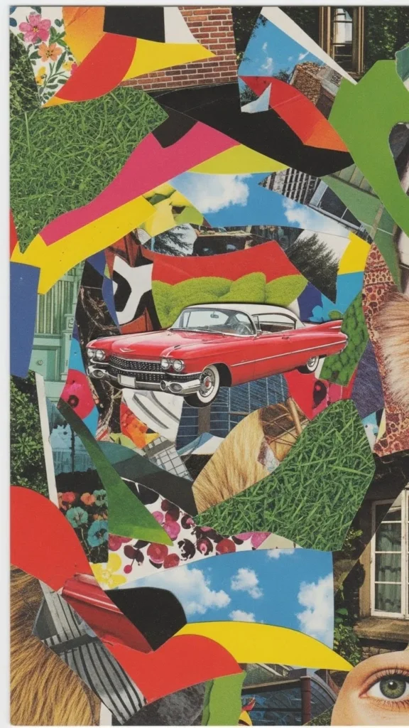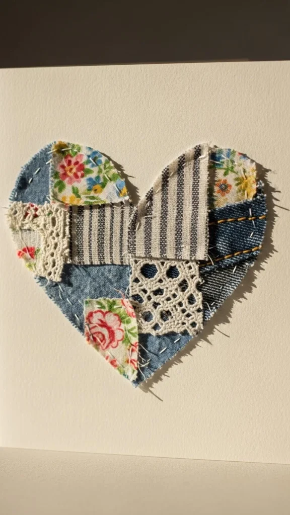 Cut old clothing into shapes. Glue onto paper. Denim, lace, cotton—all work. The mix in texture makes this stand out and costs nothing.