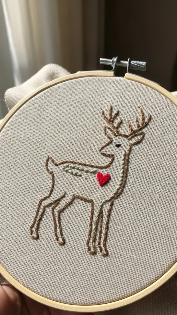 This pattern is a classic beginner favorite. A clean heart outline stitched in backstitch teaches control without pressure. You follow one continuous line, which makes mistakes easy to fix. Use a six-inch hoop and light cotton fabric for smooth stitching.