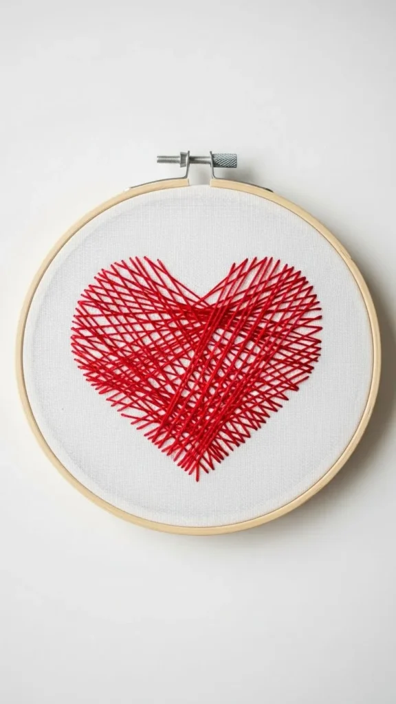 This design uses straight stitches to form a heart shape. It feels modern and calm. Beginners like it because lines are easier to control than curves.