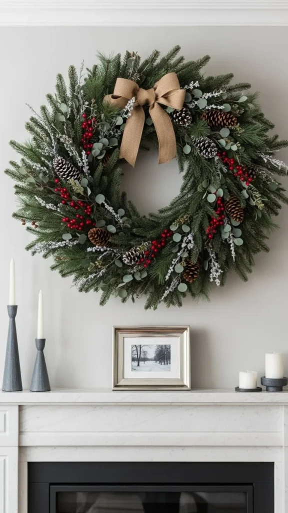 Keep decor below minimal so the wreath stands out.