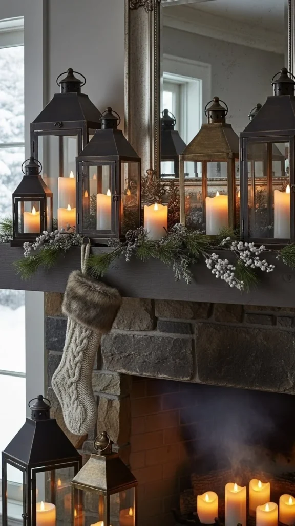 9. Lantern-Focused Mantel