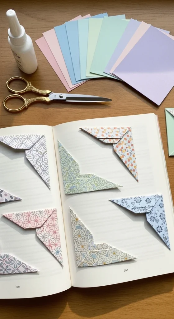 Origami corner bookmarks are one of the fastest and cutest reading crafts you can make at home. You start with a square of paper, fold it into a small pocket shape, and slide it over the page corner. That is it. The basic version already looks neat, but you can make it much more fun by adding ears, eyes, hearts, stars, or tiny faces on the front. This makes it a great project for kids, classrooms, or anyone who wants something cute without a lot of setup. Patterned scrapbook paper looks lovely, though plain paper works just fine if you decorate it with markers. Old calendars, greeting cards, and magazine pages can also work if the paper is sturdy enough. These bookmarks are cheap to make in batches, which is helpful if you want extras for gifts or study sessions. A stack of them takes up almost no space, and they feel much more special than folded page corners. If you want a simple win, this is a smart first choice. It is quick, useful, low-cost, and easy to repeat in lots of colors and styles.