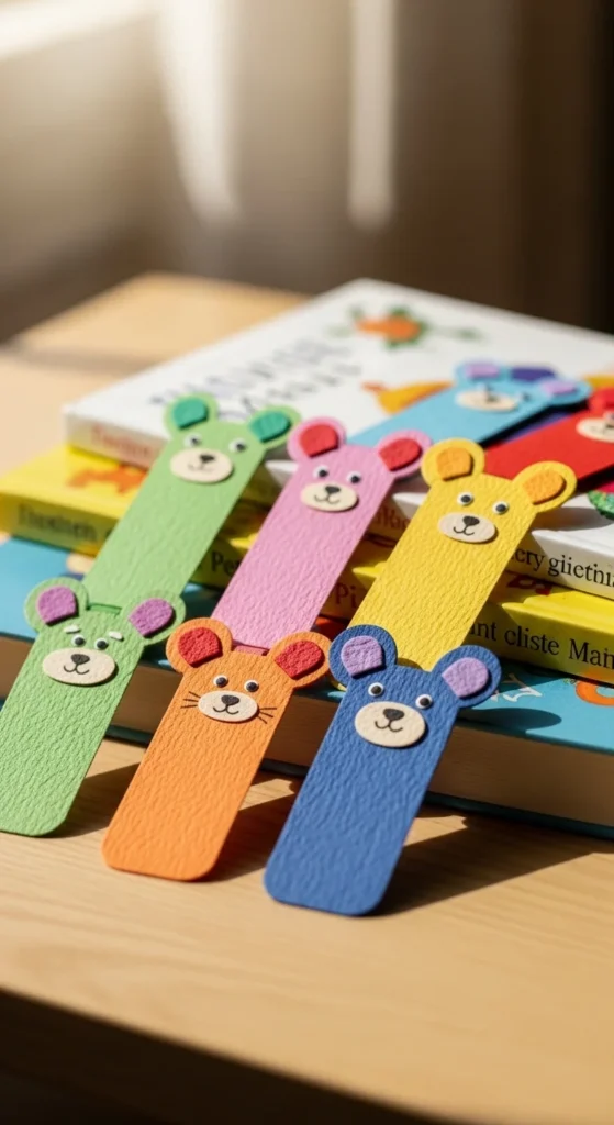 Animal face bookmarks are playful, easy to make, and especially fun for kids or anyone who likes cute reading accessories. Start with a strip of cardstock or a corner bookmark base, then turn it into a cat, bunny, bear, fox, frog, or panda using cut paper shapes and simple marker details. Tiny ears, round noses, sleepy eyes, and rosy cheeks can make a basic bookmark look extra charming. This idea works well because it is low-cost and very forgiving. The shapes do not have to be perfect to look cute. Construction paper, old packaging, and leftover scrapbook paper are all useful here. If you are crafting with children, let them pick their favorite animal and decorate it with stickers, crayons, or googly eyes. These bookmarks also make great classroom party crafts or birthday activity table projects. If you want them to last longer, glue the design onto thicker cardboard before trimming. A set of matching animal bookmarks can be stored in a pencil cup or gifted with a storybook. It is a simple, happy craft that turns basic materials into something fun enough to make reading feel even more inviting.