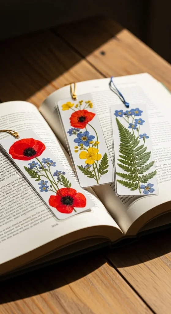 Pressed flower bookmarks have a gentle handmade look that feels lovely in journals, novels, and gift books. They are easy to make too. Start with flat dried flowers or leaves, place them on cardstock or clear laminate sheets, and seal them so the petals stay protected. If you do not have a laminator, clear contact paper works well for a simple home version. Small daisies, fern pieces, tiny petals, and delicate leaves are especially nice because they stay flat. This project is a great choice if you like nature-inspired crafts that do not ask for many supplies. It is also a smart way to turn flowers from your yard or a walk outside into something you can keep using. For a budget-friendly version, use cereal box cardboard covered with white paper as the base. Punch a hole at the top and add ribbon or twine for a finished look. These bookmarks feel giftable right away, especially when paired with poetry books, journals, or notebooks. They look soft and thoughtful without being hard to make. It is a calm, pretty craft that gives ordinary pressed flowers a second life in a very practical form.