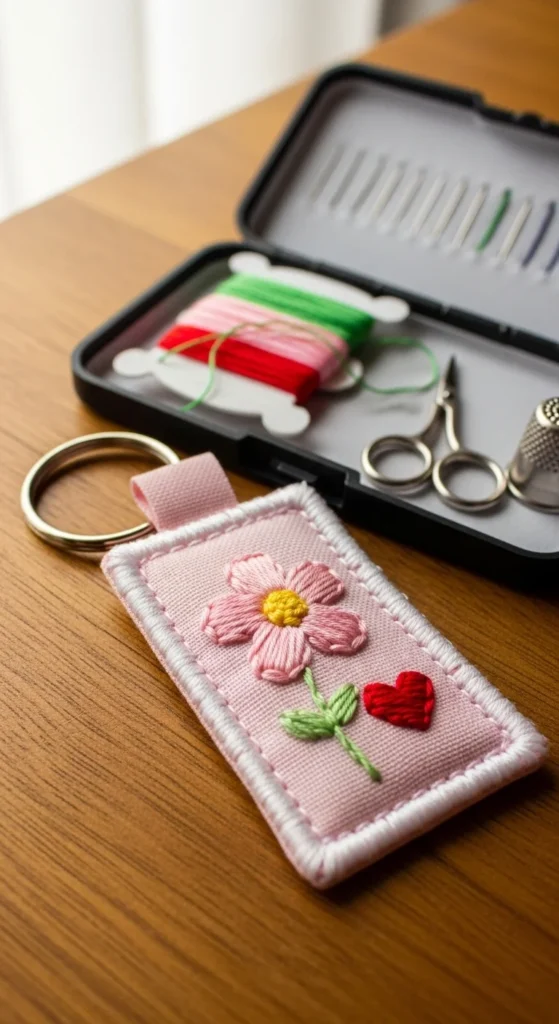 A friendship keyring patch is a small project with a very useful outcome, which makes it excellent for beginners. Stitch a tiny flower, heart, star, initial, or smiley motif onto a small piece of sturdy fabric or felt, then turn it into a keyring or bag charm. The scale stays tiny, so the project is quick, affordable, and easy to finish in one sitting. That makes it a strong choice for people who want quick progress rather than a long hoop project. These little stitched patches also make great gifts. You can personalize them with colors or symbols that match the person receiving them. Felt is especially good because it is firm and easy to handle, but sturdy cotton backed with another layer works too. Because the design is so small, you only need a little thread and a few simple stitches. This project feels practical, fun, and low pressure. It is also a great way to use up leftovers from bigger projects. Tiny embroidered keyrings prove that beginner crafting can be both simple and genuinely useful.
