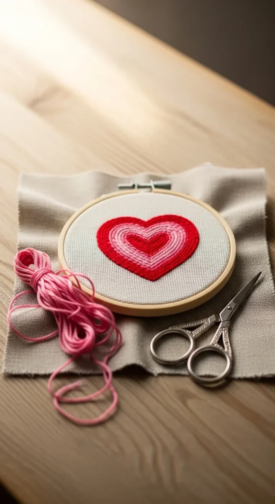 A tiny heart motif is one of the easiest hand embroidery designs for beginners because the shape is familiar and fast to stitch. You can outline it with backstitch, fill it with satin stitch, or keep it simple with just a running stitch border. The design is small, which means you can finish it quickly and feel that early success that keeps a new hobby fun. It is also very affordable because you only need a small amount of fabric and one thread color if you want to keep it basic. A red or pink heart is classic, but black, mustard, blue, or green can look lovely too. This motif works well on gift tags, small hoops, denim pockets, baby items, or friendship gifts. You can stitch one large heart in the center or scatter several tiny hearts across a fabric surface for a playful pattern. If the curves are not perfectly even, that is completely fine. Handmade embroidery often looks sweeter when it has a little character. This project helps you practice turning stitches around a curved shape, which is useful later when you move on to flowers, leaves, or lettering. It is simple, cute, and very easy to repeat.