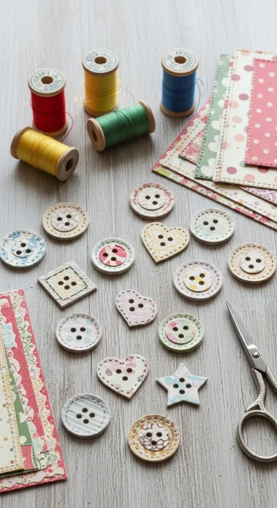 Paper buttons are a creative little project that can be used on greeting cards, pretend sewing kits, scrapbooks, and lightweight decor. They are not meant for heavy real clothing wear in most cases, but they are wonderful for craft embellishment and playful paper-based projects. To make them, cut small circles from sturdy paper or layered cardstock, then punch or draw button holes in the center. You can stack two or three circles together for more thickness or seal them with clear glue for a firmer finish. This is a good papercraft idea for anyone who likes tiny details and wants something a little different from standard folding projects. Kids can make oversized colorful buttons for pretend play or collage art, while adults can create neater versions for tags, cards, and mixed media decor. Patterned paper, painted scraps, and old packaging all work well. Since buttons are small, this project is excellent for using leftover bits that are too tiny for larger crafts. It is also very low cost. A little jar of handmade paper buttons looks charming on a craft desk and gives you decorative pieces ready for future projects whenever you need them.