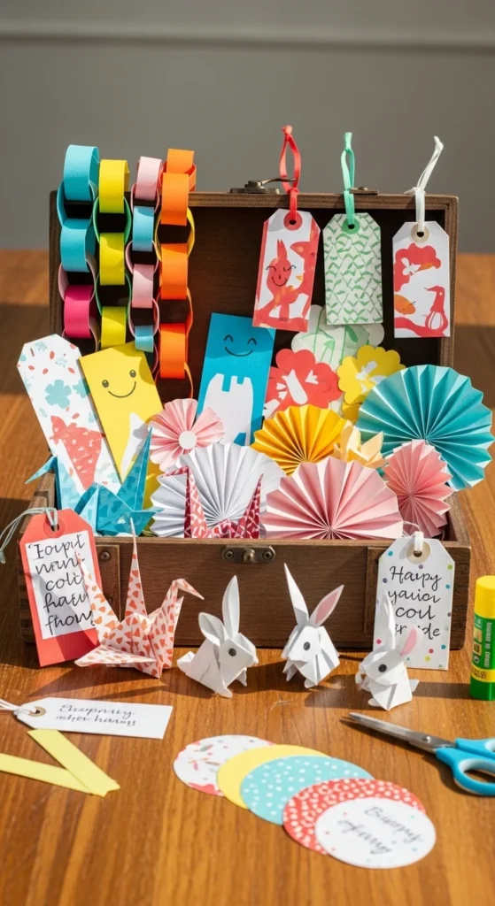 A ten-minute craft mix box is less one single project and more a smart way to keep paper crafting easy and stress-free. Fill a small box or tray with pre-cut squares, paper strips, scraps, glue, markers, and a few simple templates for projects like bookmarks, chains, tiny flowers, folded frogs, and mini cards. Then when boredom hits or you want a quick creative break, you already have everything ready. This is especially helpful for families, teachers, and anyone who likes DIY paper crafts but does not want to pull out full supplies every time. You can theme the box by season, color palette, or age group. For example, one week it could hold butterfly garland parts, and another week it could hold origami squares and card blanks. This setup keeps the cost low because it uses scraps and leftover materials that might otherwise sit unused. It also removes the hardest part for many people, which is getting started. A simple mix box turns paper crafting into something you can do in short little pockets of time. That makes it easier to keep creativity part of everyday life without making it feel like a big project.