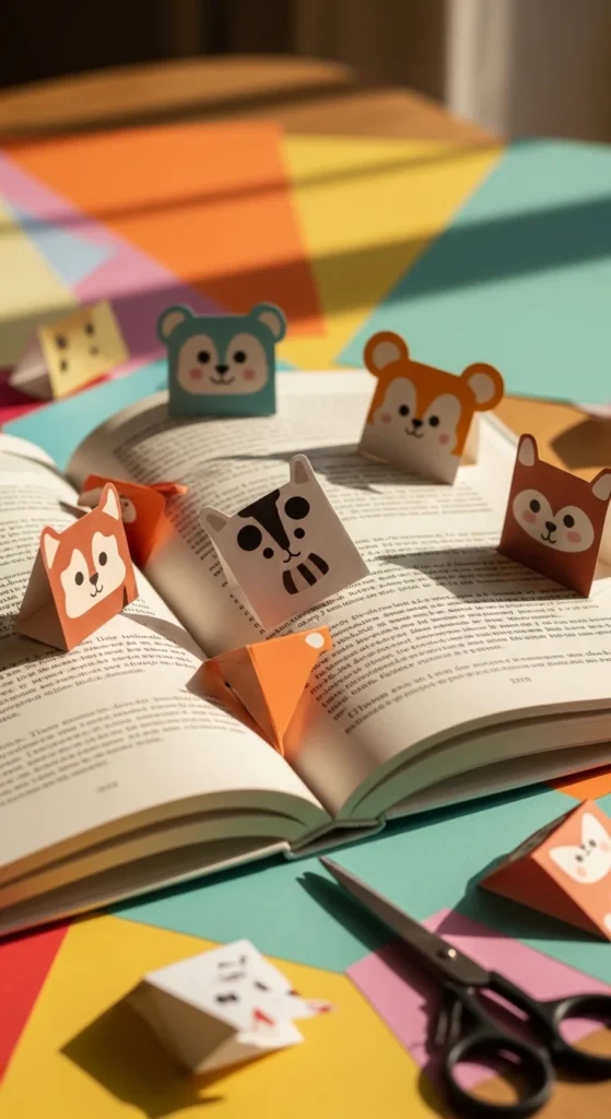 Corner bookmarks are one of the easiest paper crafts you can make because they are quick, useful, and easy to personalize. A basic folded corner shape can become a fox, cat, monster, bear, frog, or any other little reading buddy with just a few cut paper details. This project is especially good for kids, students, and anyone who wants a low-mess craft that finishes fast. Start with a square of paper and fold it into a corner pocket shape that slides over the page. Then glue on ears, teeth, eyes, or little hearts to match the style you want. Printer paper works in a pinch, but construction paper and origami paper usually look better and last longer. You can also use old magazine pages for a recycled version with fun patterns. These bookmarks make sweet little gifts and are perfect for party favors, reading corners, or classroom rewards. They are also helpful for beginners who want an easy introduction to folding without doing a more detailed origami model. Since they use small pieces of paper, the cost stays very low. It is a practical paper craft that feels cute, personal, and easy enough to make in batches.