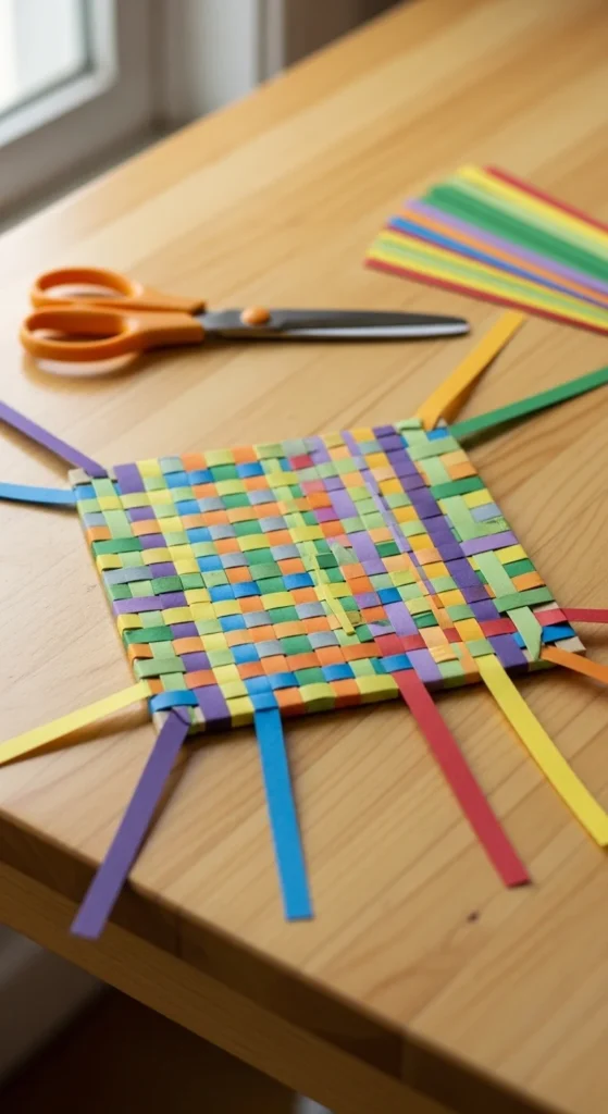Paper weaving is one of those crafts that looks more detailed than it really is. By cutting slits into one sheet and weaving paper strips through it, you can make a colorful mat, placemat, card front, or wall piece with very simple steps. It is a great beginner project because the method is repetitive and easy to understand after the first few strips. Choose two or three paper colors that look nice together, then cut one base sheet with evenly spaced slits. Thread strips over and under until the page starts to fill. Glue the strip ends on the back so the weaving stays in place. This project is perfect for using construction paper, old wrapping paper, or colored printer paper, which makes it budget friendly. It is also a good craft for kids because it helps with hand control while still feeling playful. Try making rainbow patterns, checkerboard looks, or seasonal color mixes. Once you learn the flat weaving method, you can use the same idea for paper baskets and more shaped projects later. If you want a paper craft that feels calm and satisfying without needing special tools, weaving is a smart place to start. The finished piece always looks bright and cheerful.