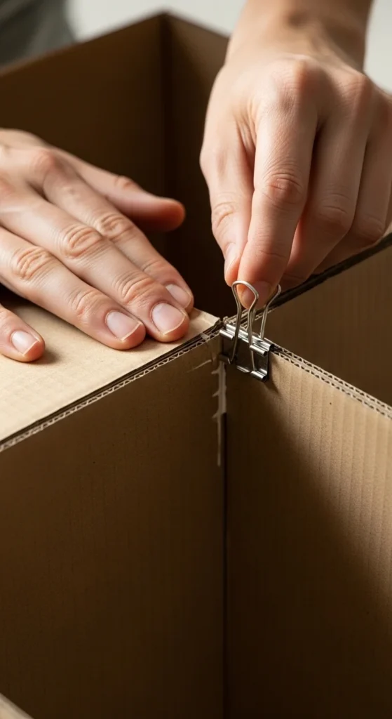 Tip: If you want a luxury feel, combine shipping cardboard + a chipboard lining on the inside walls.