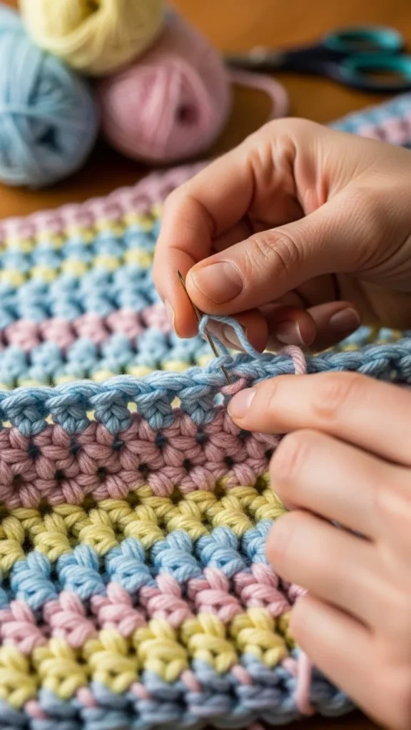 - Use a yarn needle to weave in loose ends securely on the back side.