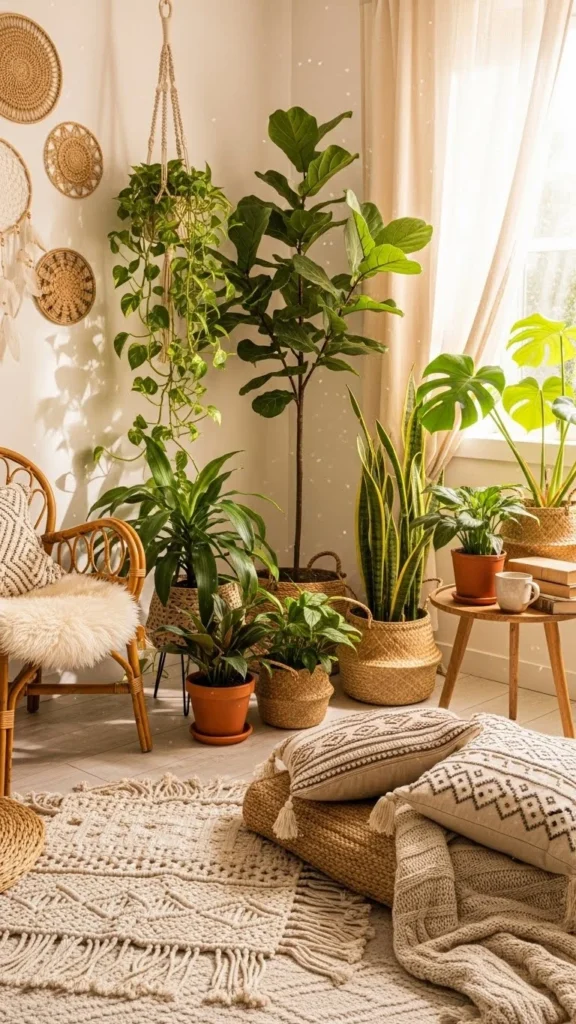 Plants are practically a requirement in boho homes. They soften the space, add life, and instantly make a room feel more relaxed.