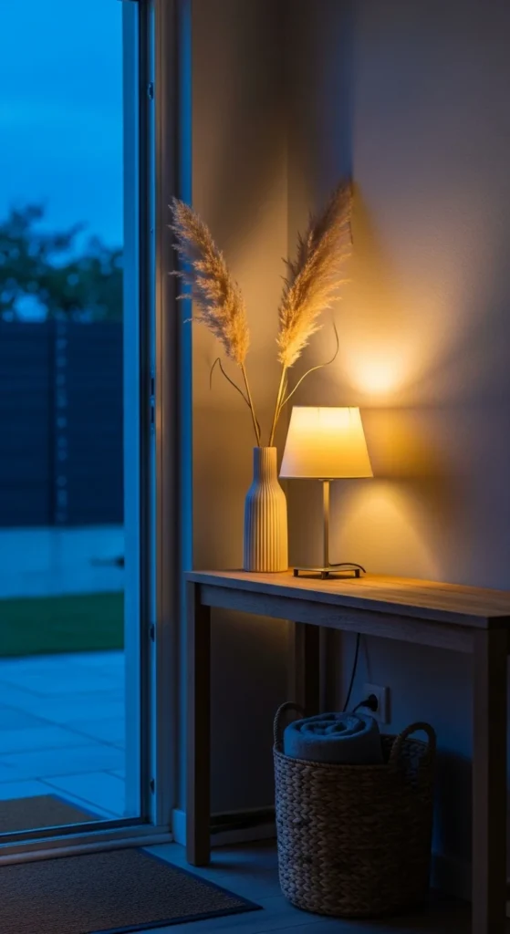 Lighting plays a huge role in first impressions. Harsh overhead lights can make an entry feel flat, while warm layered lighting makes it feel cozy and inviting.