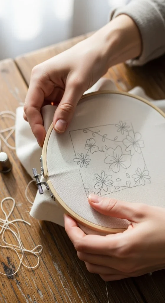 A good setup makes embroidery much less frustrating. If your fabric is loose, your stitches may pucker or look uneven.