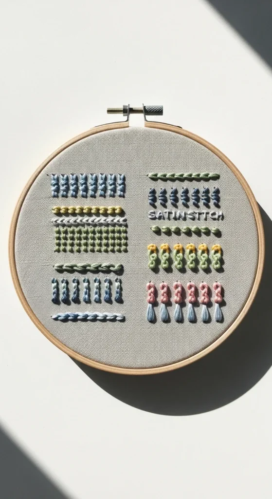 A smart beginner move is to practice each stitch on a scrap piece of fabric before starting your real design.