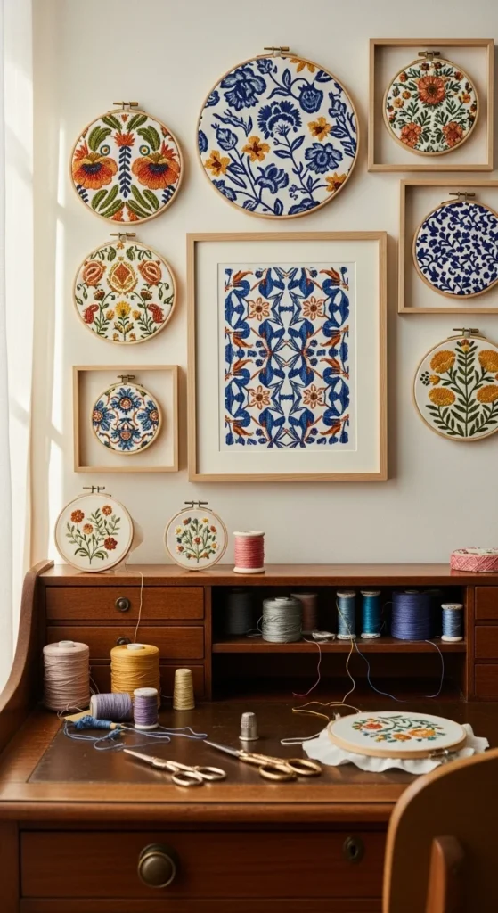 - Make a set of small embroidered circles and hang them as a DIY wall gallery.