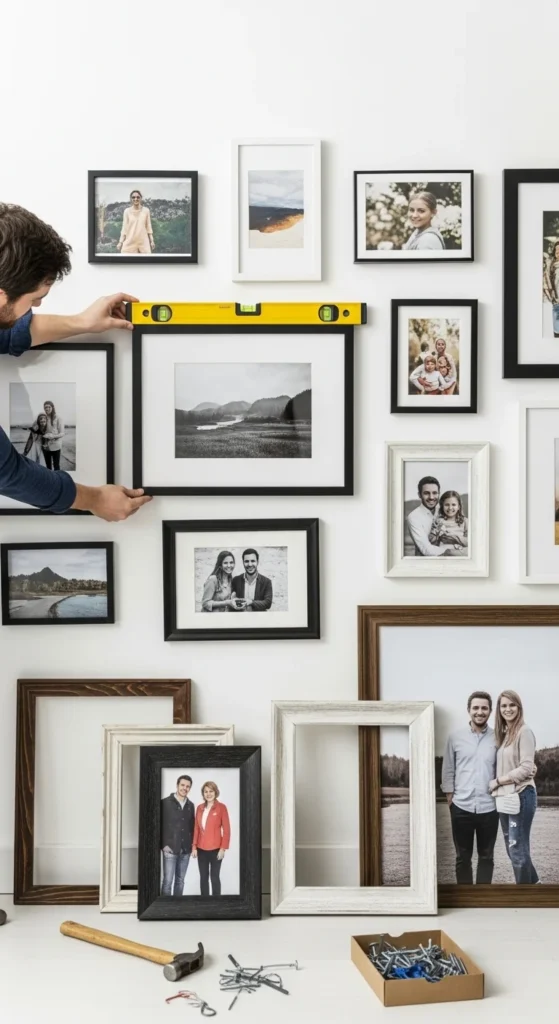 Pro Tip: For a modern gallery vibe, keep the spacing even (2–3 inches) between frames. For a casual, playful look, overlapping photos adds charm.