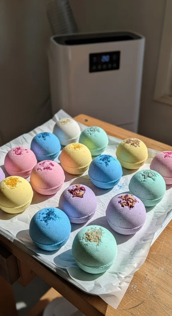 Avoid ovens or direct sunlight—heat can cause early fizzing or cracks. Once dry, they should feel firm and smooth to the touch.