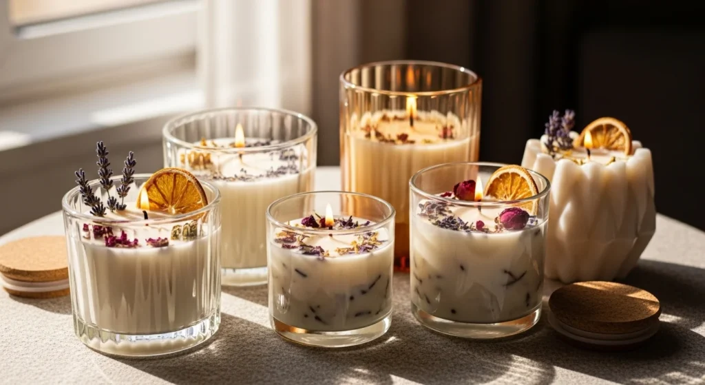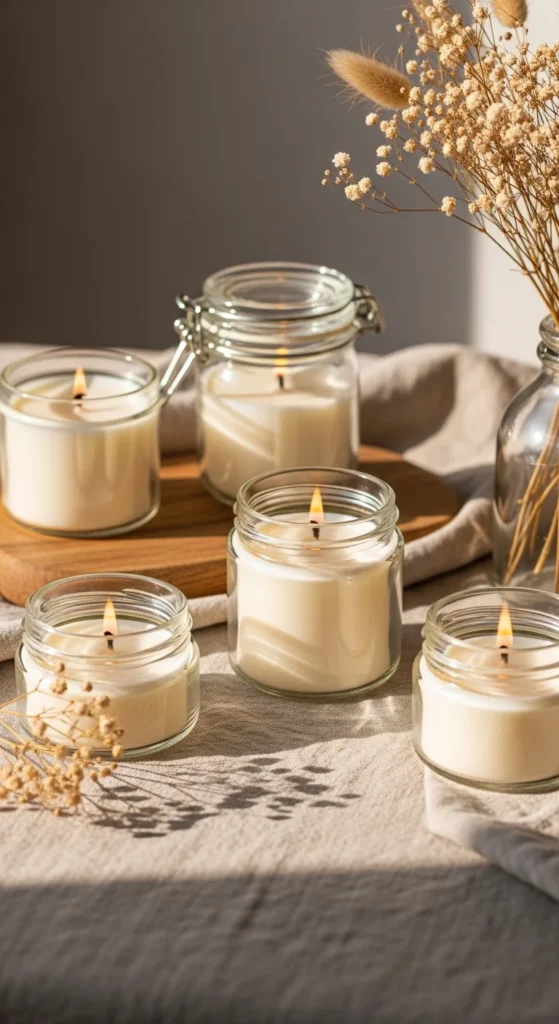 Soy wax is often a favorite for beginners because it is easy to work with and gives a clean, smooth finish. Clear glass jars are also a great choice because they look classic and fit almost any decor style.