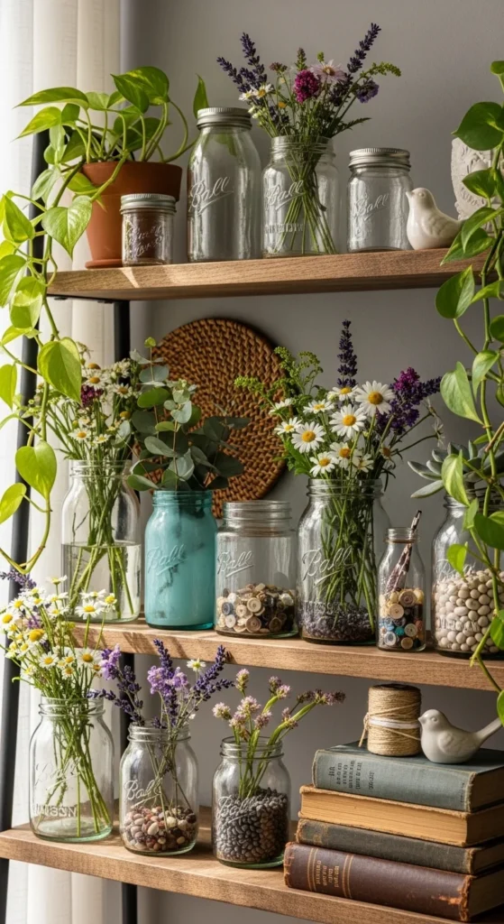 Glass jars instantly elevate recycled crafts into something home-worthy.