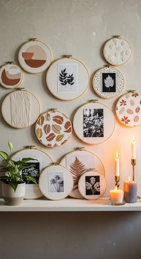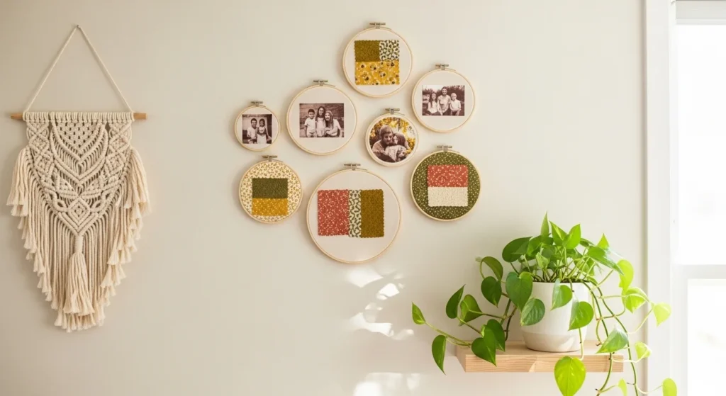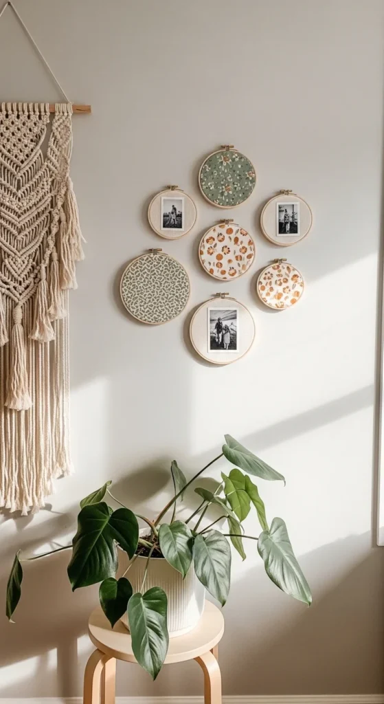 If your walls feel a little… empty (or your photos are living their whole life inside your phone), embroidery hoops are the easiest way to create warm, rustic wall art without buying expensive frames. They instantly add that boho-vintage vibe, they’re super affordable, and the best part is you can swap the design whenever you get bored—seasonal fabric, new photos, tiny embroidery, you name it.
