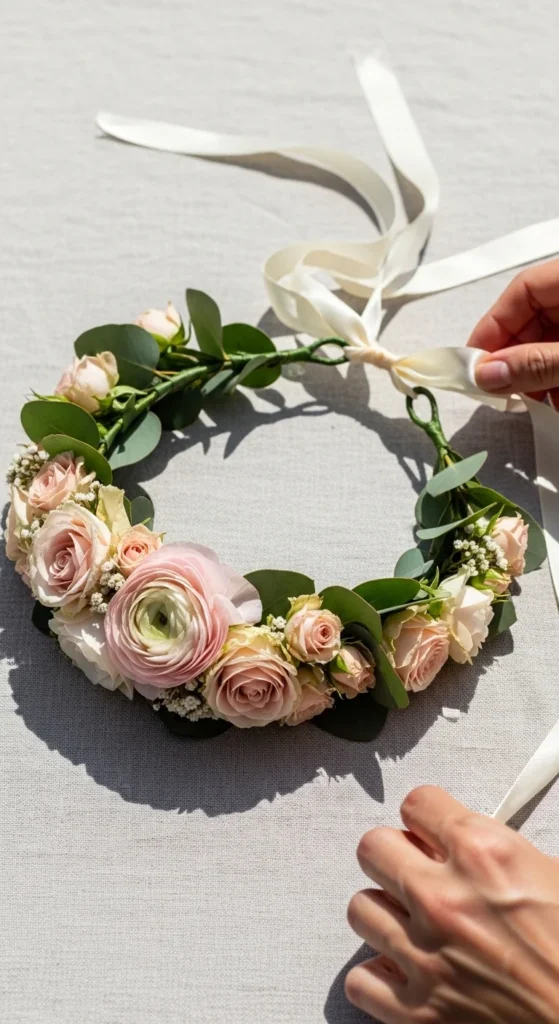 Too many flowers can make the crown heavy. Leave a little breathing room so the shape stays pretty and wearable.