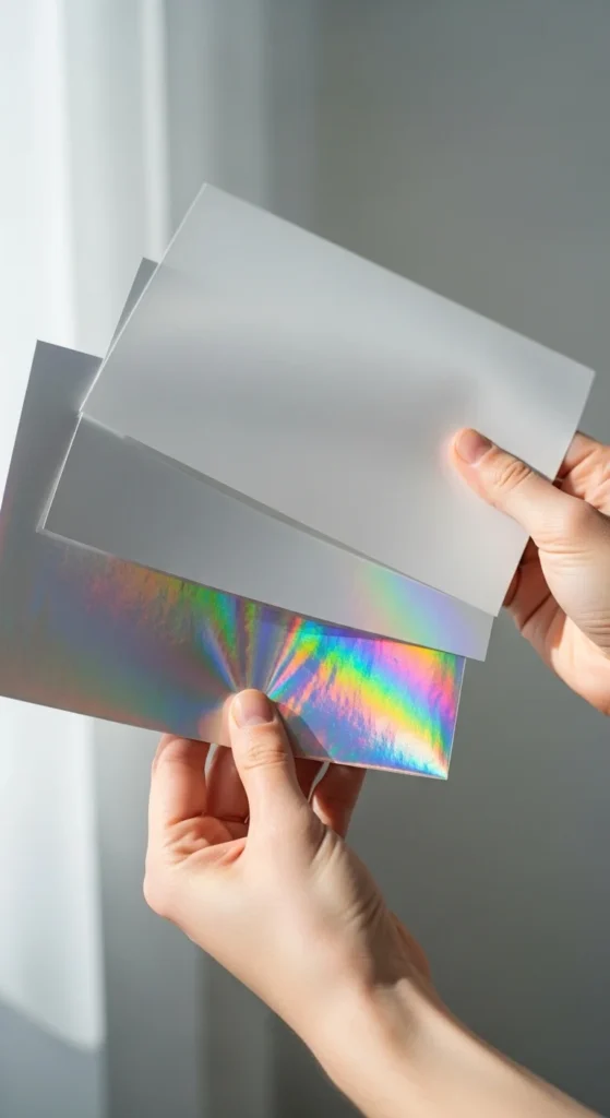 - Want a limited “special drop” feel? Use holo for a few hero stickers.