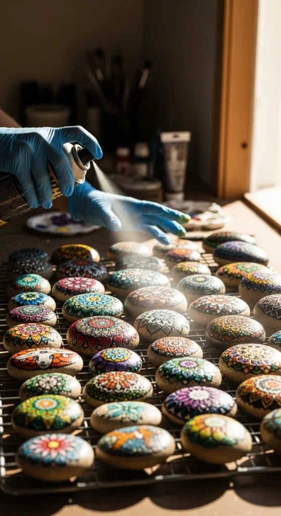 Tip: Reapply sealant every few months for long-lasting vibrancy in garden rocks.