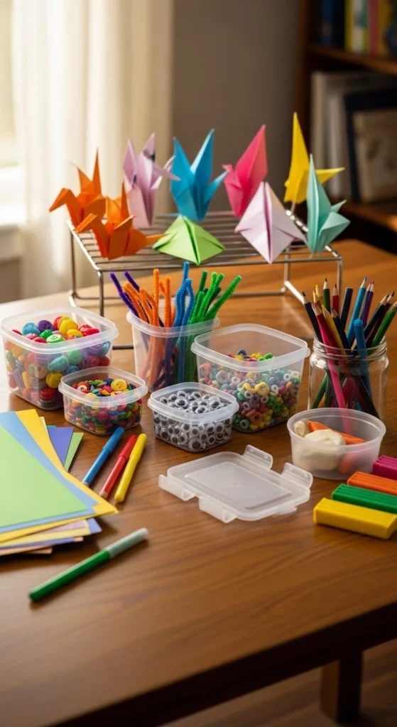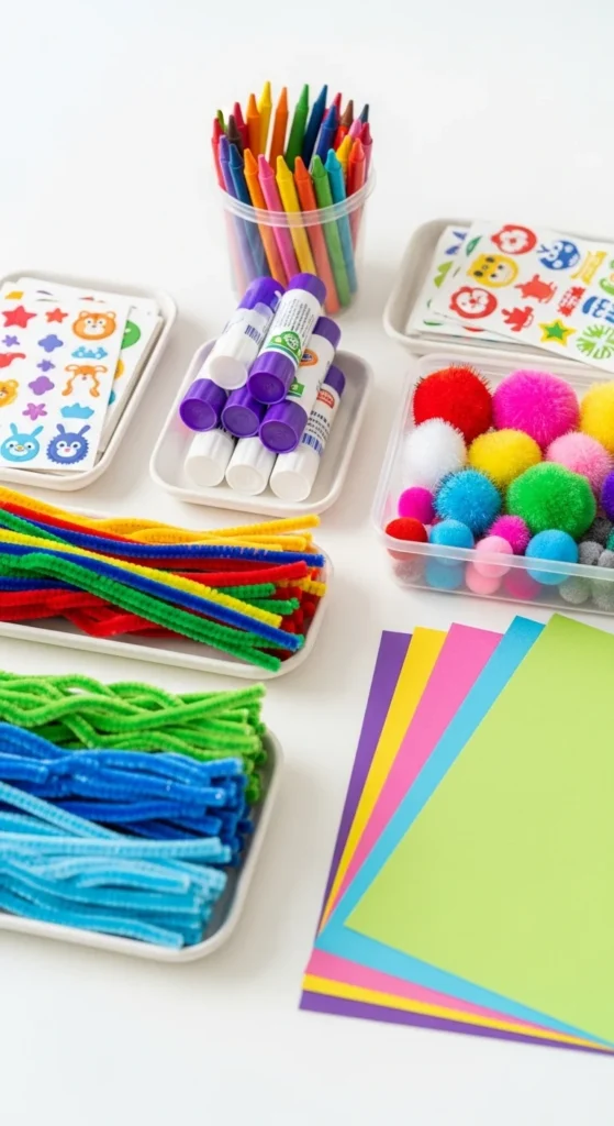 One of the easiest ways to keep crafts tidy is to contain the supplies before the activity even starts. Kids do better when they can clearly see what they can use without dumping out an entire box.