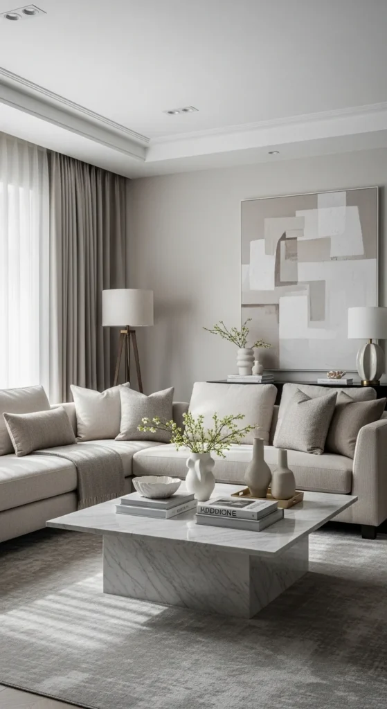 Avoid mixing too many bright shades. Luxury rooms feel peaceful, not chaotic.