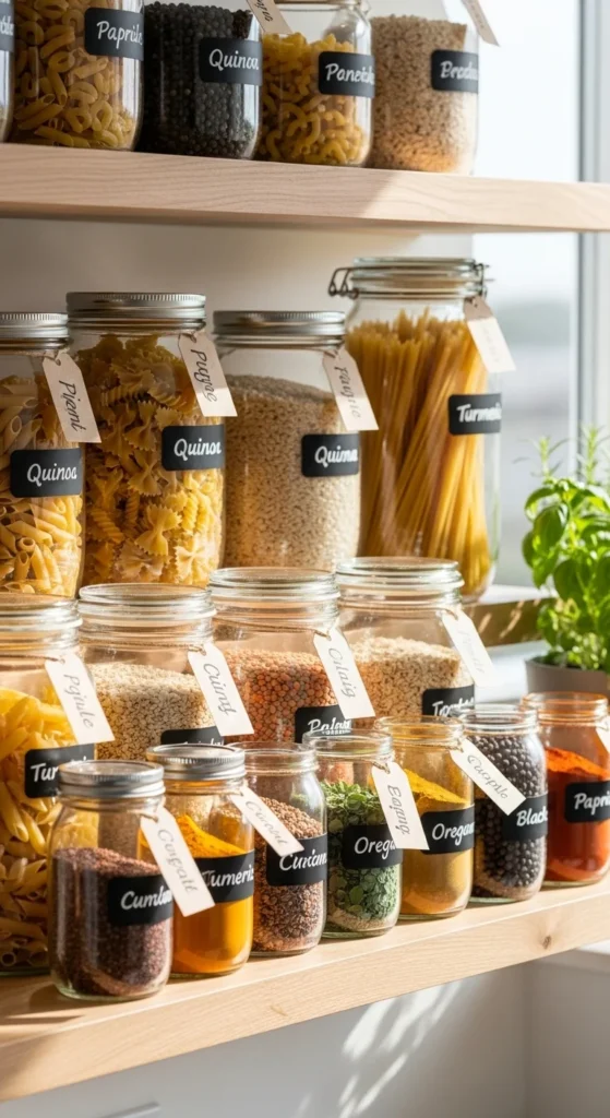To add flair, label the jars with minimalist stickers or chalkboard paint.