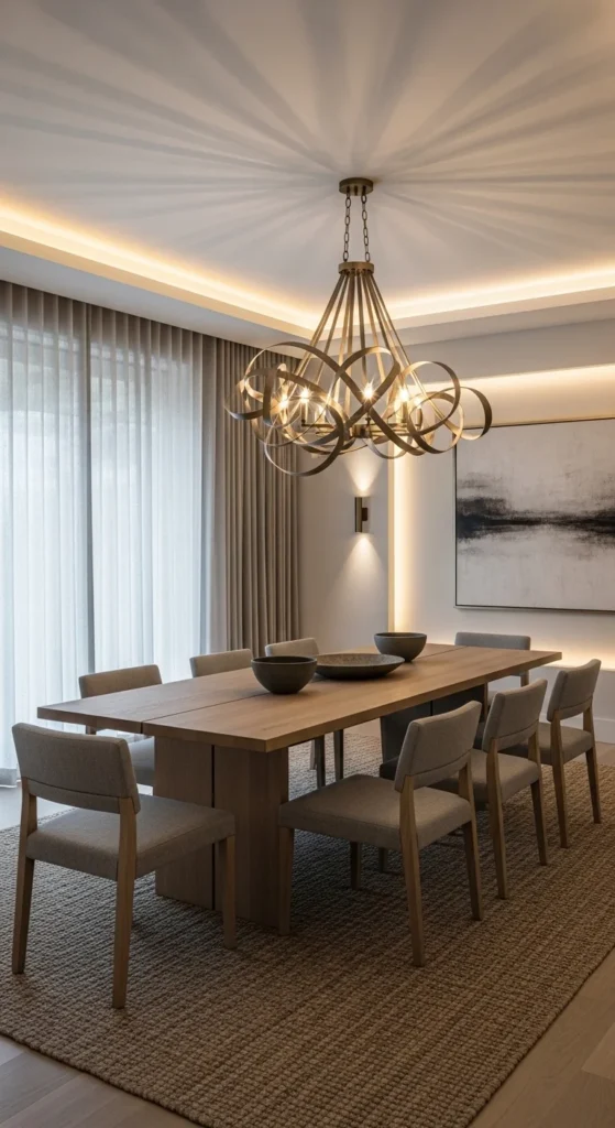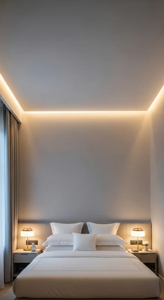 Some of the most beautiful lighting is the kind you don’t see directly. Cove lighting and hidden LEDs create soft wall washes that feel high-end and calming.