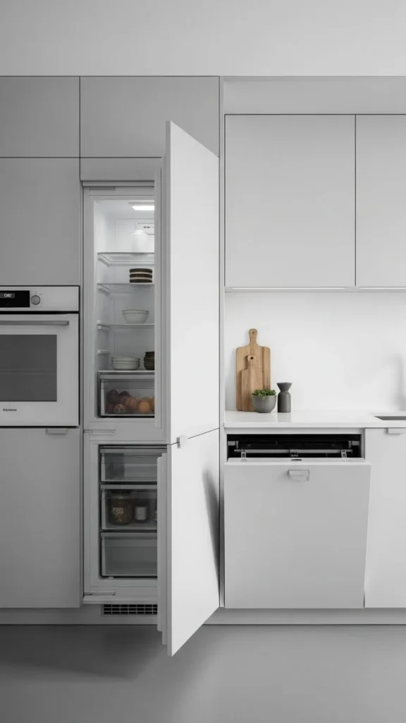 Visible appliances can interrupt flow. Panel-ready options or appliance covers help reduce clutter.