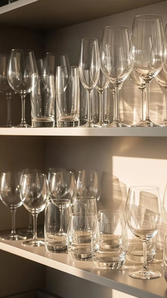 Glassware adds shine. Group similar pieces together. Keep clusters small. This creates sparkle without clutter. Place glass near light sources for best effect.