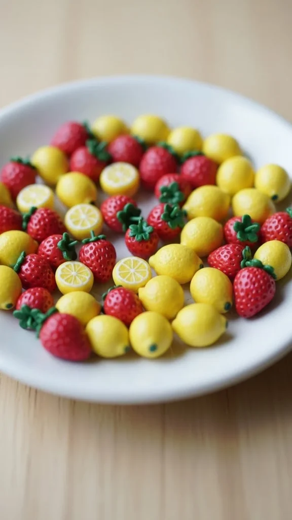 Clay fruit looks playful. Start with strawberries, lemons, or oranges.