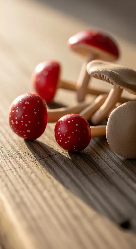 Tiny mushrooms are ideal for beginners because they use basic rounded forms that are easy to shape. Roll a small ball for the cap and a short cylinder for the stem, then gently press them together so they attach securely. Slightly uneven shapes make them look more natural and charming. Use a toothpick to add dots or subtle texture on the cap before drying. Once hardened, paint them in bright or pastel shades and add white dots for detail. These mini mushrooms look adorable in plant pots, fairy garden scenes, or on shelves, and they help you practice forming clean, simple shapes.