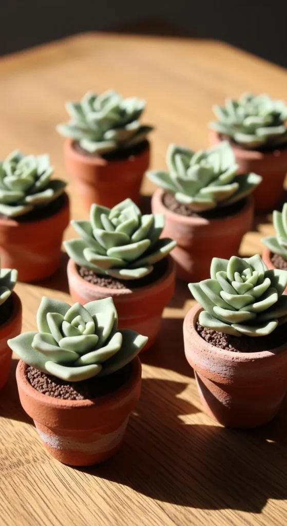 Tiny succulents look detailed but are made from simple repeated shapes. Roll several small teardrop pieces and flatten them slightly to form leaves. Arrange the leaves in a circle, pointing outward, then build another layer on top, slightly overlapping the first. Press gently so the layers hold together. Add more layers until you get a small rosette shape. After drying, paint in soft green shades with a bit of darker color near the edges. Place the finished succulent into a small clay pot if you like. These mini plants are perfect for desks and help beginners practice repetition, layering, and gentle shaping.