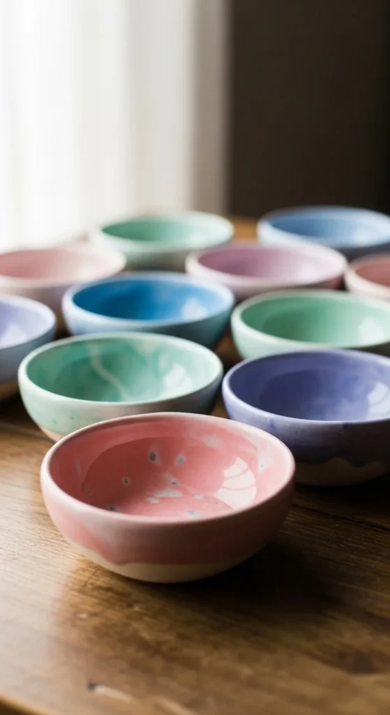 Tiny trinket bowls combine shaping and smoothing in one useful project. Roll clay into a small ball and gently press your thumb into the center to form a shallow bowl. Rotate as you press so the walls stay even. Smooth cracks with a damp finger. Shape the rim slightly for character. After drying, paint in soft colors or add simple dots or lines. These bowls hold rings, beads, or coins and are a great final beginner project that feels both creative and practical.