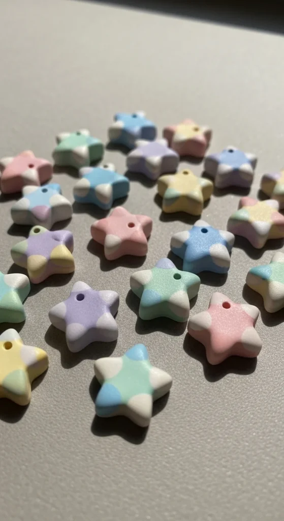 Mini stars are easy to cut and decorate. Roll clay flat and cut star shapes with a small cutter or carefully shape them with a tool. Smooth the edges with your fingertip. Poke a small hole if you want to hang them. After drying, paint in pastels or metallic shades and add tiny dots or lines for detail. These stars make lovely charms or ornaments and help beginners practice cutting clean shapes.