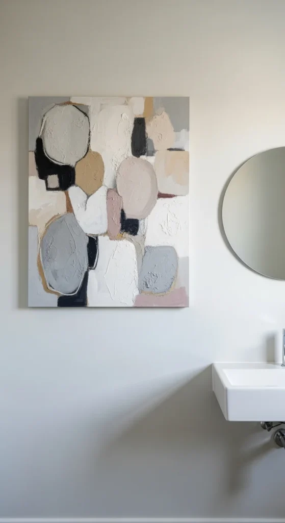 Art belongs in minimalist bathrooms when limited to one piece. Choose simple forms and quiet colors. Avoid busy patterns or text. Place the artwork where it does not compete with mirrors or fixtures. One thoughtful piece adds personality without clutter. More than one usually feels unnecessary.
