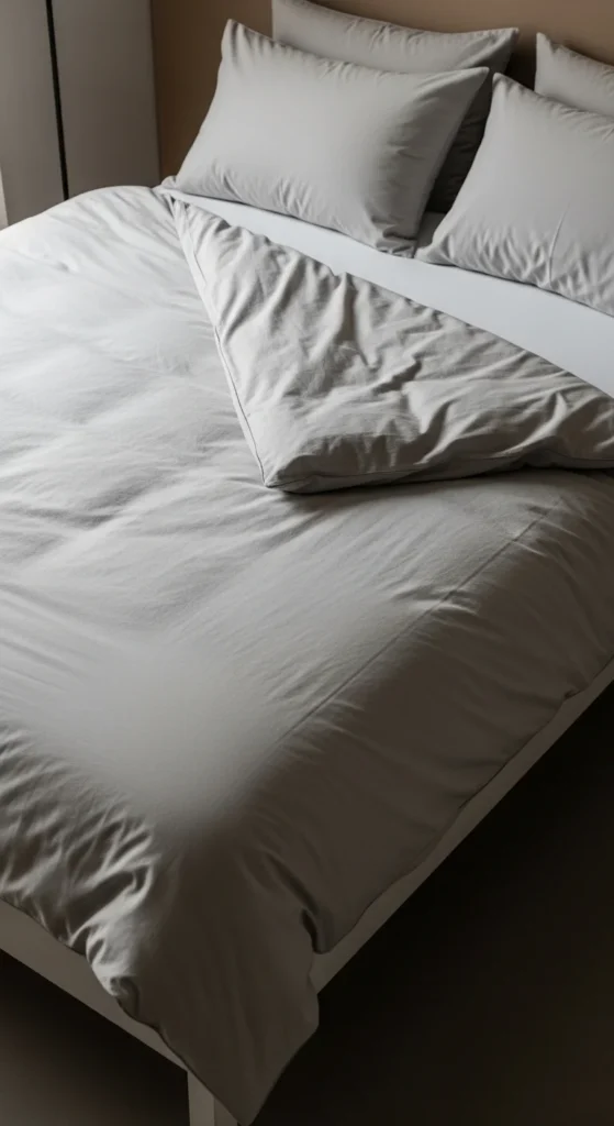 Too many pillows and throws create visual noise. Stick to minimal bedding layers like a duvet, fitted sheet, and two sleeping pillows. Add one lightweight throw if needed. Linen and cotton fabrics keep things soft and breathable. This simple setup looks calm and is easier to make each morning.